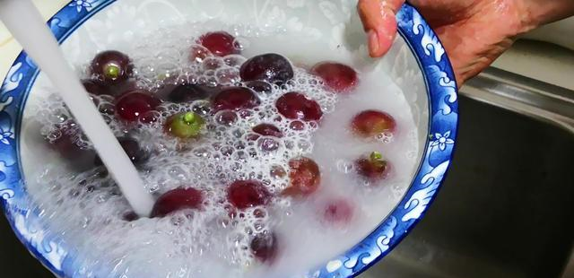 種了二十多年葡萄的岳父告訴我,葡萄的果蒂處很容易滋生細菌和蟲卵,如果清洗不干凈,吃了對身體不好,他告訴我這樣洗,吃著才更放心: